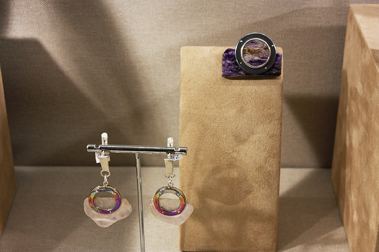 Елизавета Полтавская, Москва. Серьги «Притяжение», 2024; брошь «Концентрация», 2025
